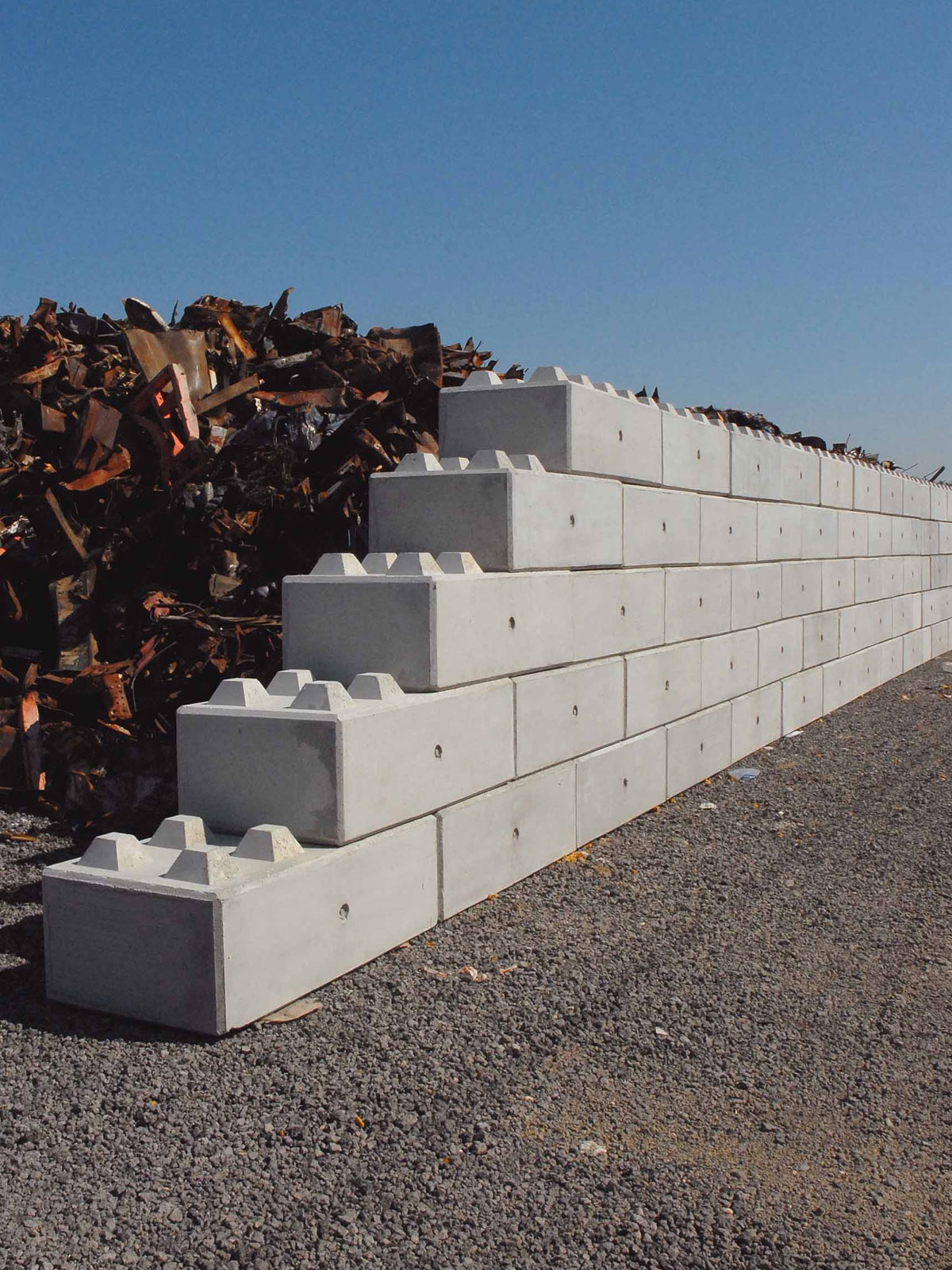 Soluções robustas e fiáveis para contenção e estabilização de terrenos. Os muros de suporte em betão pré-fabricado garantem rapidez de instalação, elevada resistência estrutural e adaptação a diferentes contextos geotécnicos.